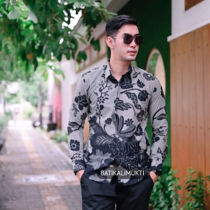 Batik trusmi baju batik pria dewasa remaja lengan panjang modern slimfit slim fit original asli cirebon motif bunga big size jumbo cocok untuk kerja .